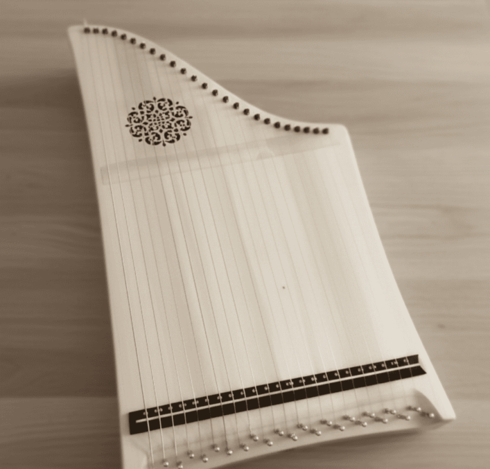 Die Mischung aus kleiner Tischharfe und Zither bezaubert nicht nur mit reinem Klang,